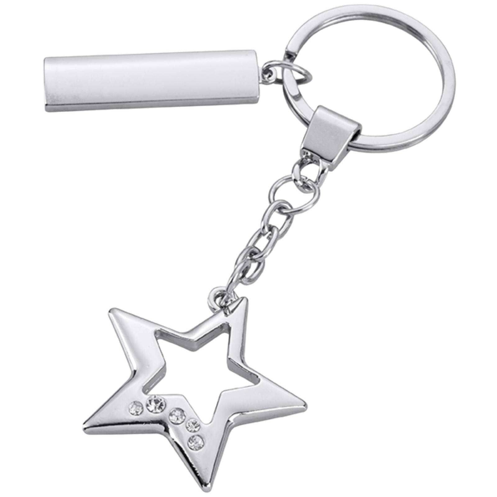 מחזיק מפתחות מתכתי משובץ באבנים "כוכב" עם לוחית מלבנית למיתוג
