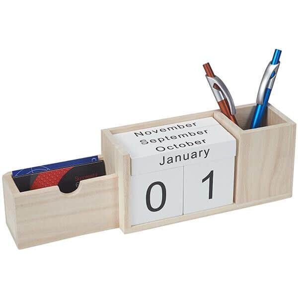 מעמד קלנדר תאריכון קוביות עץ טבעי עם כוס לעטים ומעמד כרטיסי ביקור