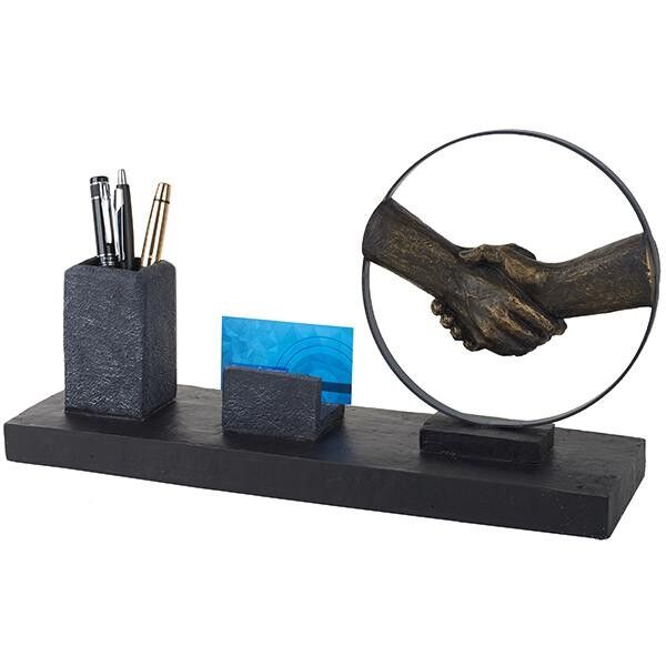 מעמד שולחני אומנותי "יד לוחצת יד" מבית פסלי היוקרה "GRACIA GALLERY"