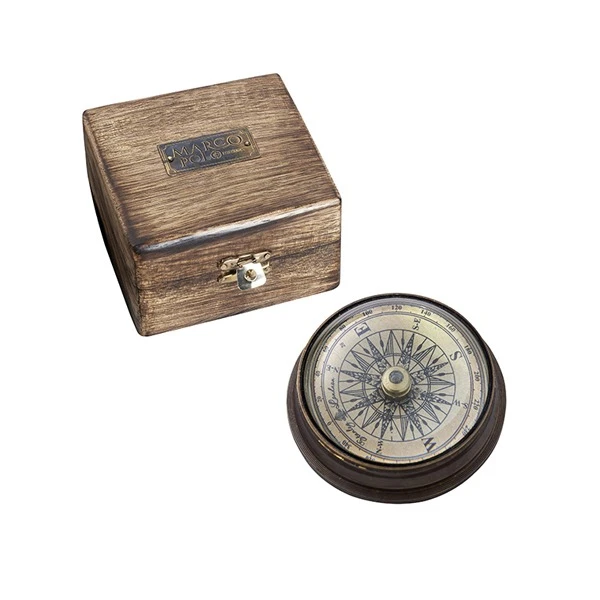מצפן בועה על בסיס נחושת בקופסת עץ