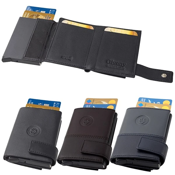 ארנק יוקרתי ומעוצב מבית המותג גבעוני, המשלב טכנולוגיית הגנה RFID ו-NFC המגנה על כרטיסי האשראי שלך מפני קריאות זדוניות ומגנה על המידע האישי שלך. הארנק עשוי מעור איכותי ומגיע עם מנגנון שולף כרטיסים נוח, המאפשר גישה מהירה ומסודרת לכרטיסי האשראי.